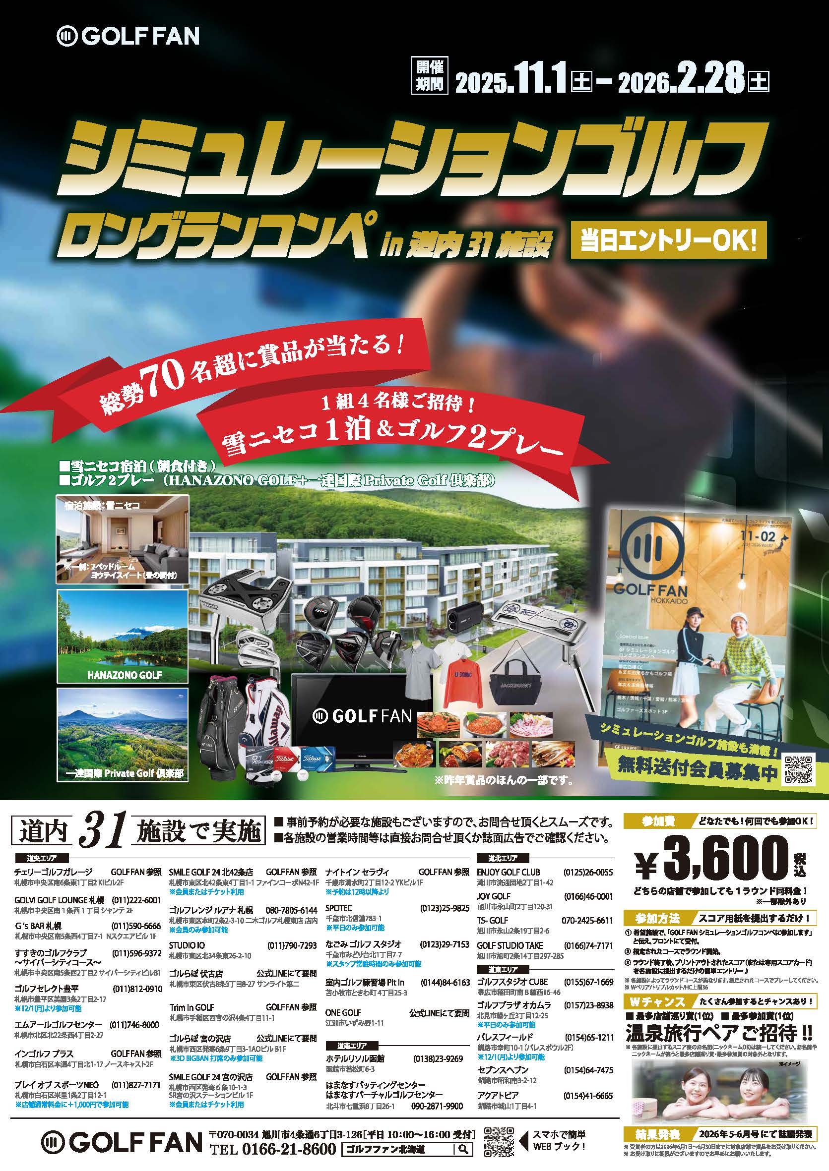 11月1日から来年の2月28日の期間、GOLF FAN様主催のシミュレーションゴルフのロングランコンペを今年も開催することになりました!
